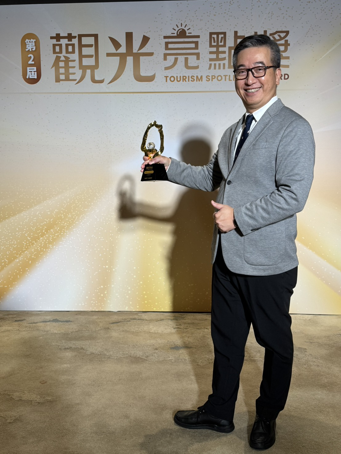 本次第二屆觀光亮點獎頒獎典禮暨百大亮點發表記者會於11月11日上午假北市遠東香格里拉飯店舉行,金酒公司丁丞康總經理由交通部林國顯次長手中獲頒「十大觀光亮點」的獎牌,代表著評審團一致肯定,與金酒公司對地區觀光發展的不懈努力。