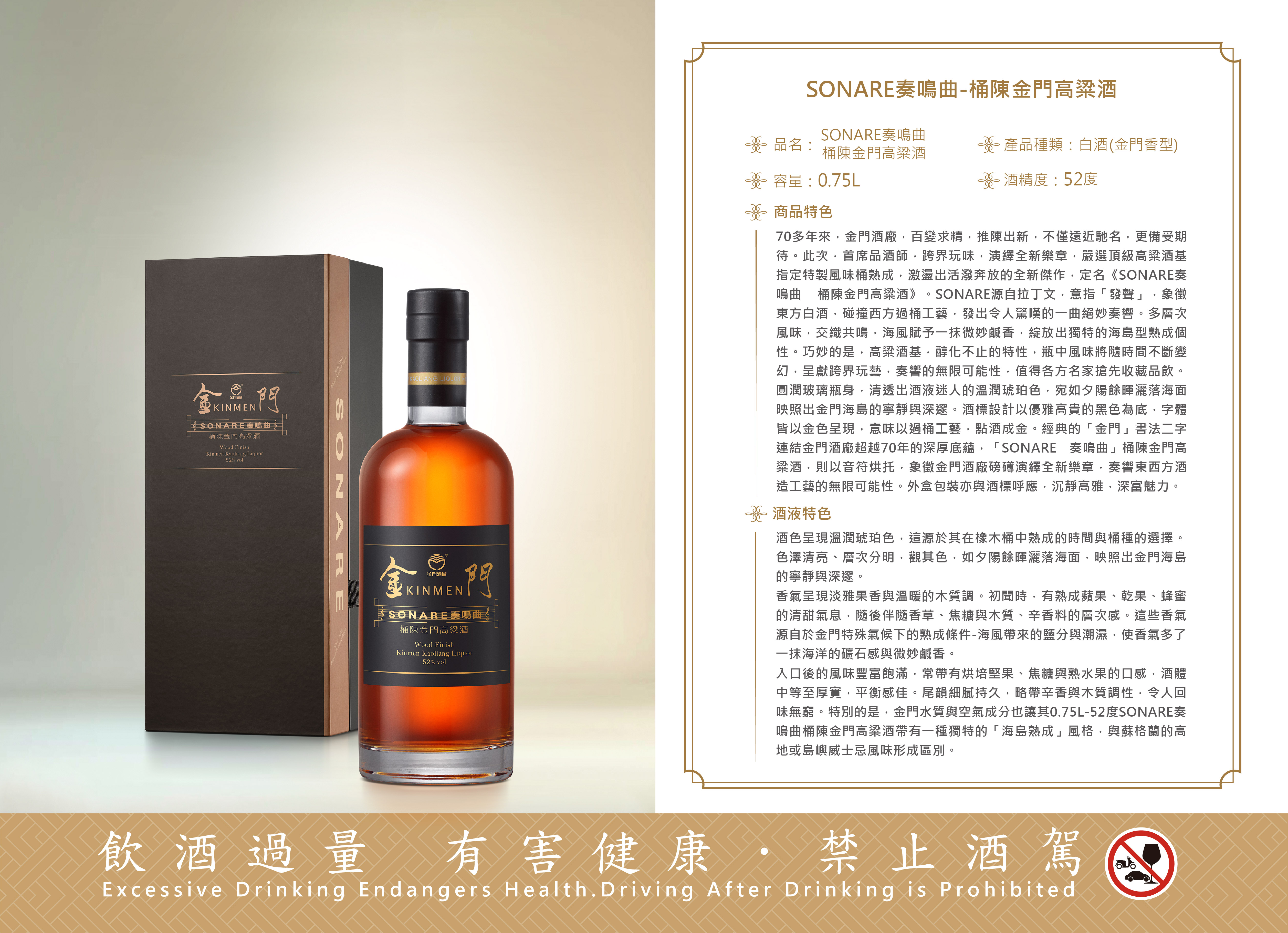 0.75L-52度SONARE奏鳴曲- 桶陳金門高粱酒