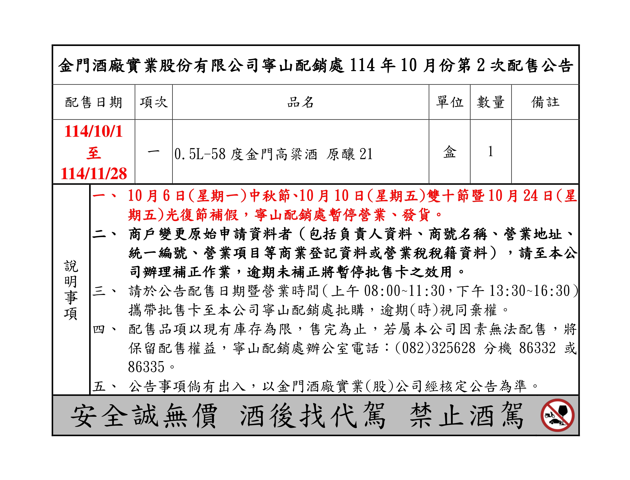 寧山配銷處114.10月份第2次配售公告